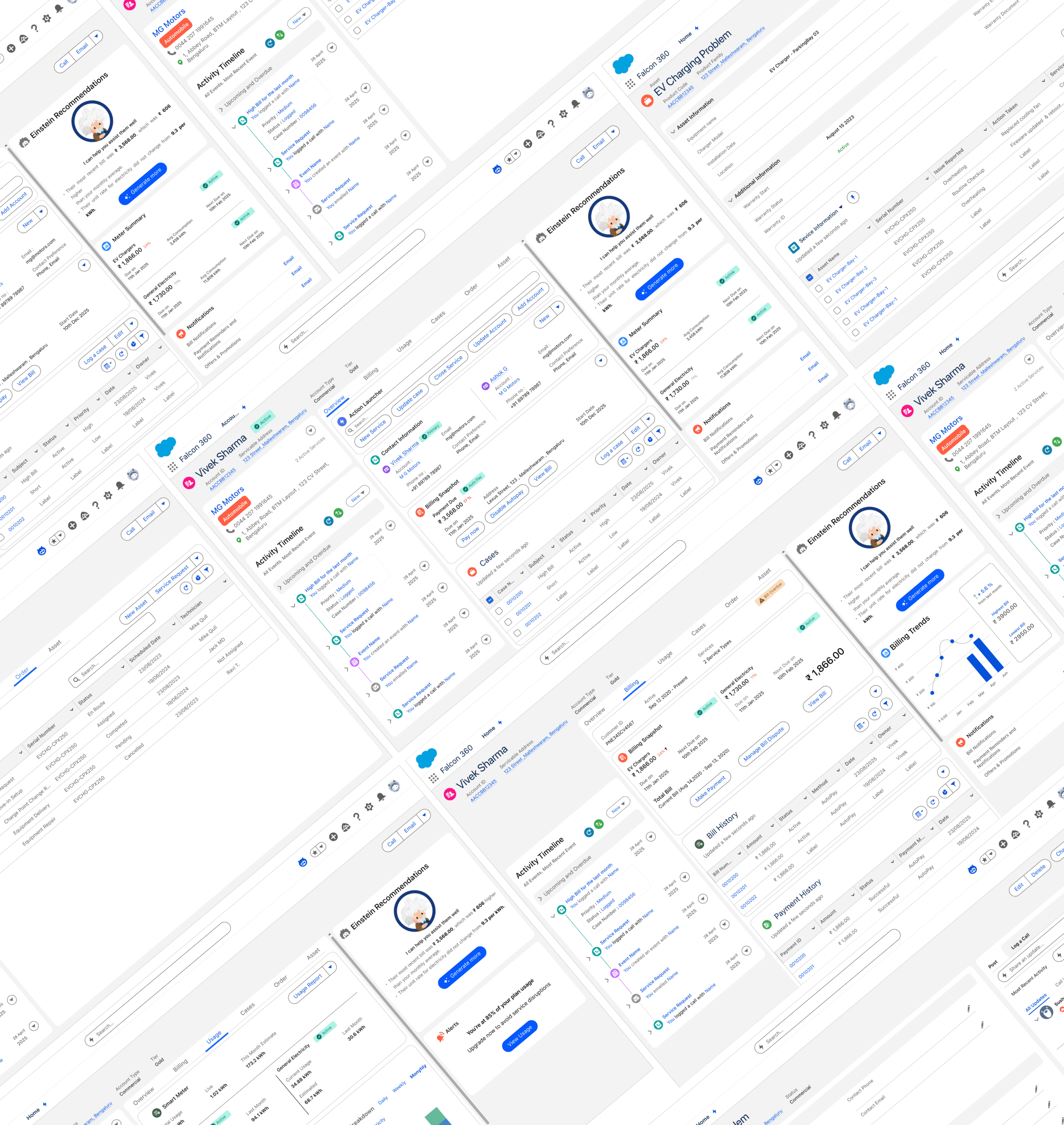 The primary goal of this project was to design a unified interface for enterprise customer service agents in the Energy & Utilities sector. The interface centralizes complex data—billing, usage, cases, and assets—enabling faster decision-making and first-call resolution.